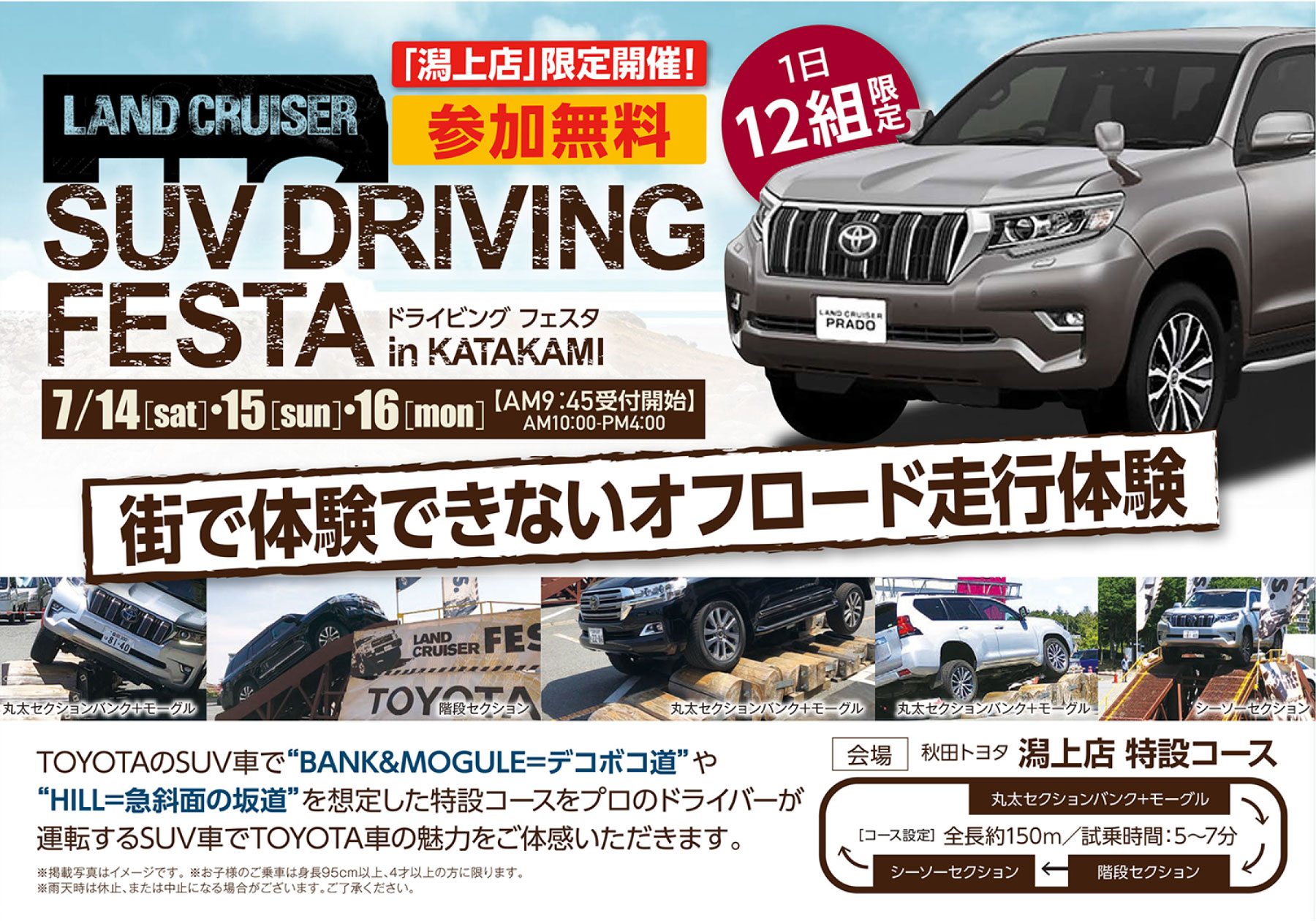 7/14(土)〜16(月) 潟上店限定SUVドライビングフェスタ開催